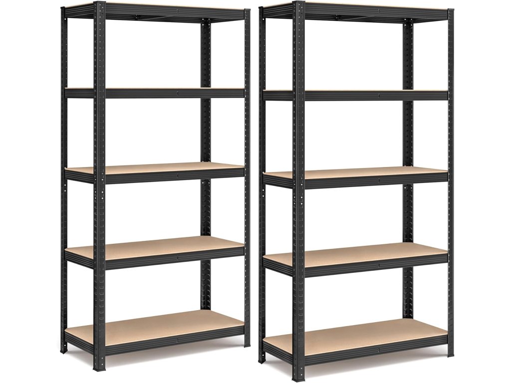 Skladovací regál, 2 kusy, 5 pater, 90 x 40 x 180 cm, černý