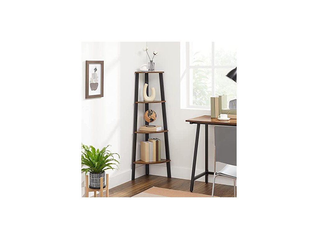 Rohový regál, 4 patra, 34 x 34 x 125 cm, rustikálně hnědý a černý