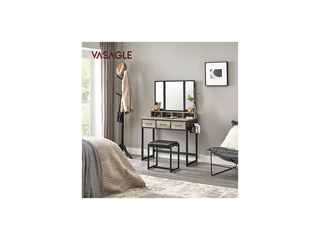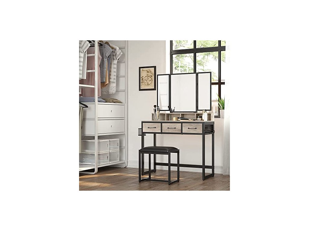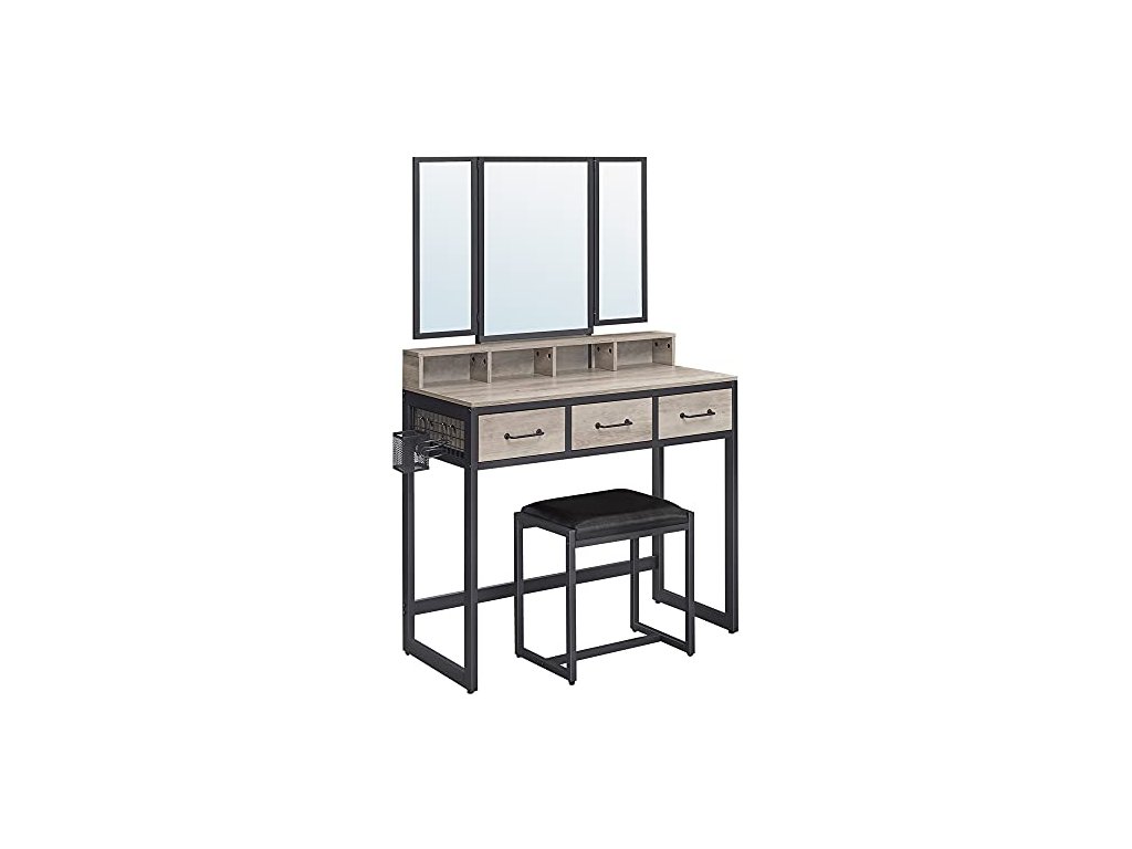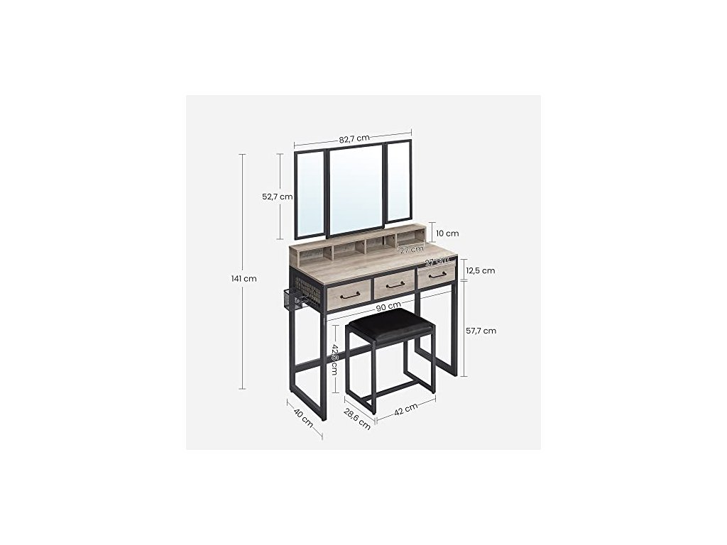 Toaletní stolek se stoličkou, 90 x 40 x 141 cm, šedý a černý