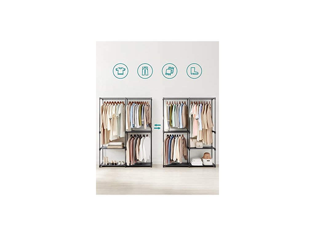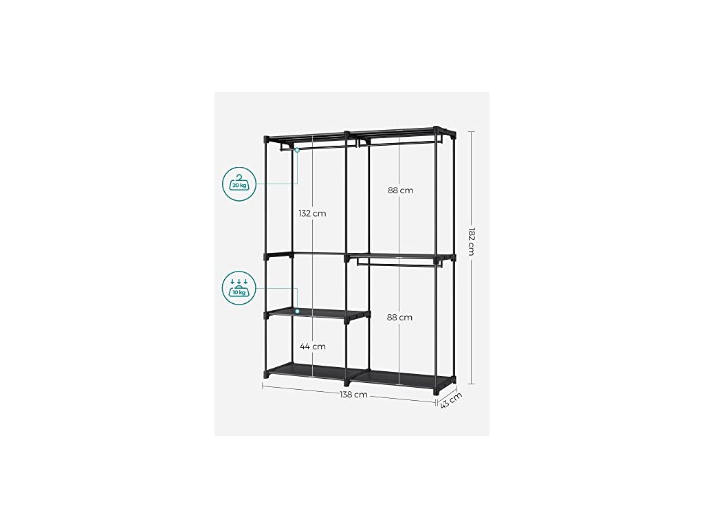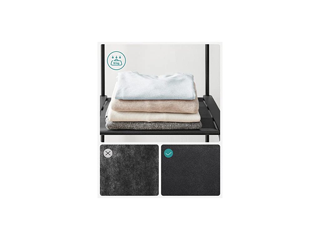 Robustní s vysokou nosností: Tento věšák na oblečení, vyrobený z ocelových trubek o průměru 16 mm a zesílených plastových spojů, poskytuje silnou oporu pro vaše oblečení (maximální statické zatížení na tyč: 20 kg) a bude vás provázet všemi ročními obdobími.