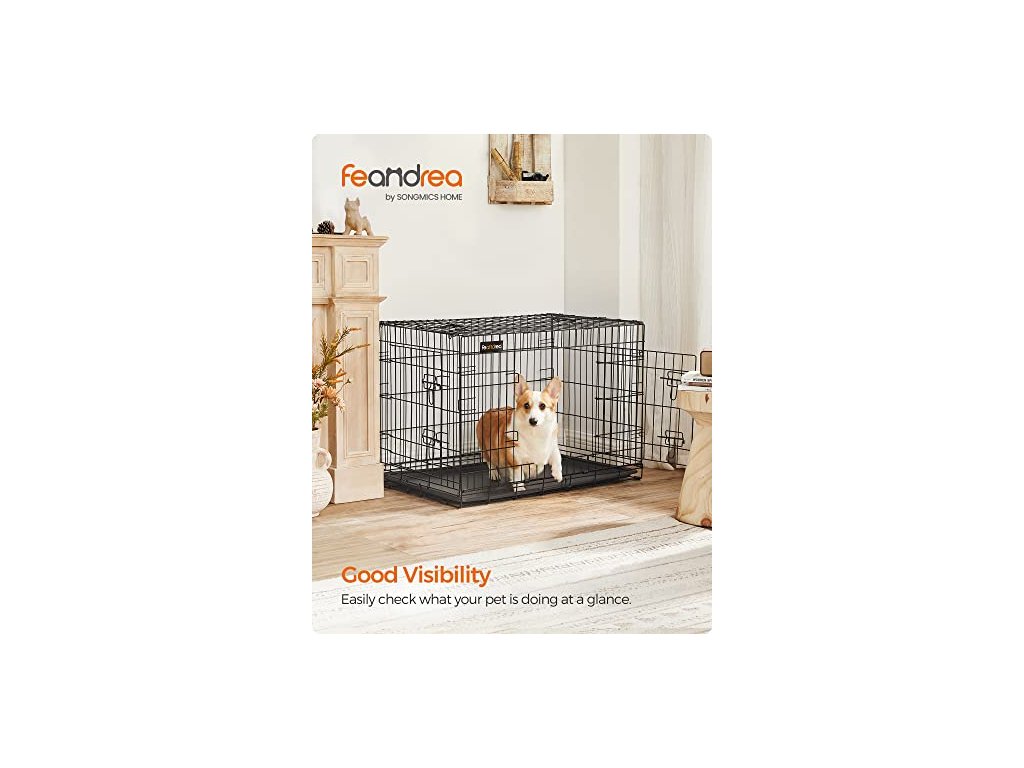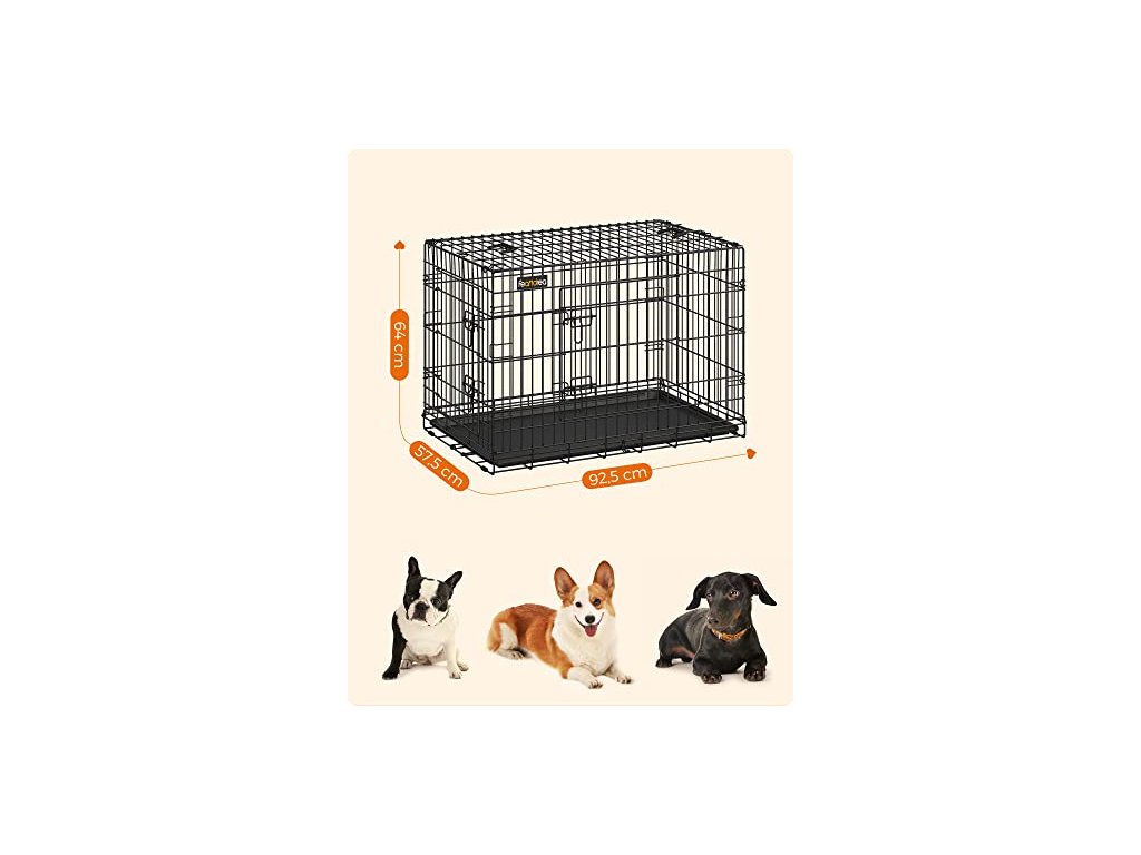 Dvojité dveře, dvojité zámky, dvojité zabezpečení: Tato klec pro psy má dvoje dvířka a usnadňuje vašemu chlupatému příteli vstup a výstup. Dvojité zámky ve tvaru písmene L zabrání vašemu chlupatému příteli, aby si dvířka sám otevřel.Doplňkové parametry