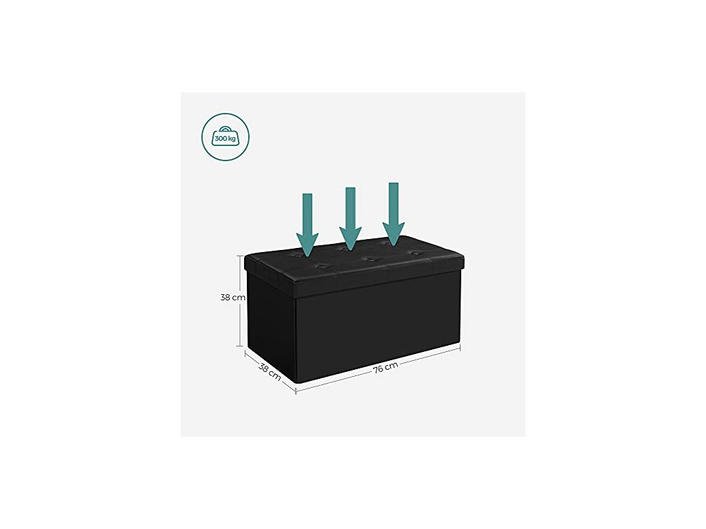 Lavice s úložným prostorem, 76 x 38 x 38 cm, černá