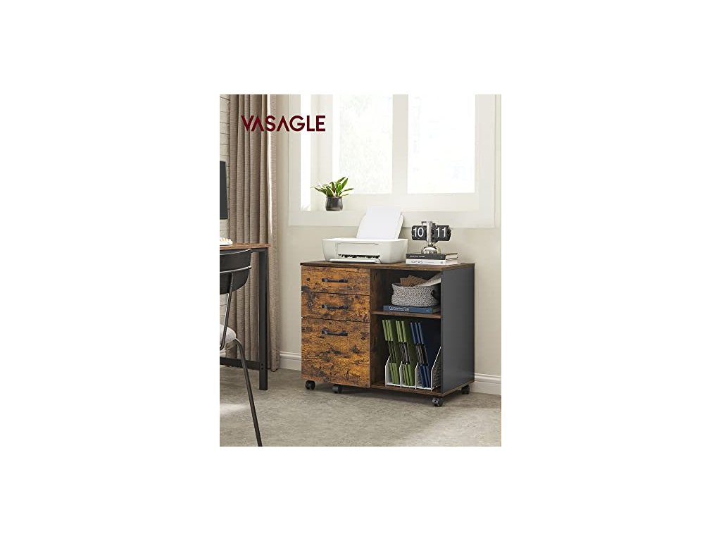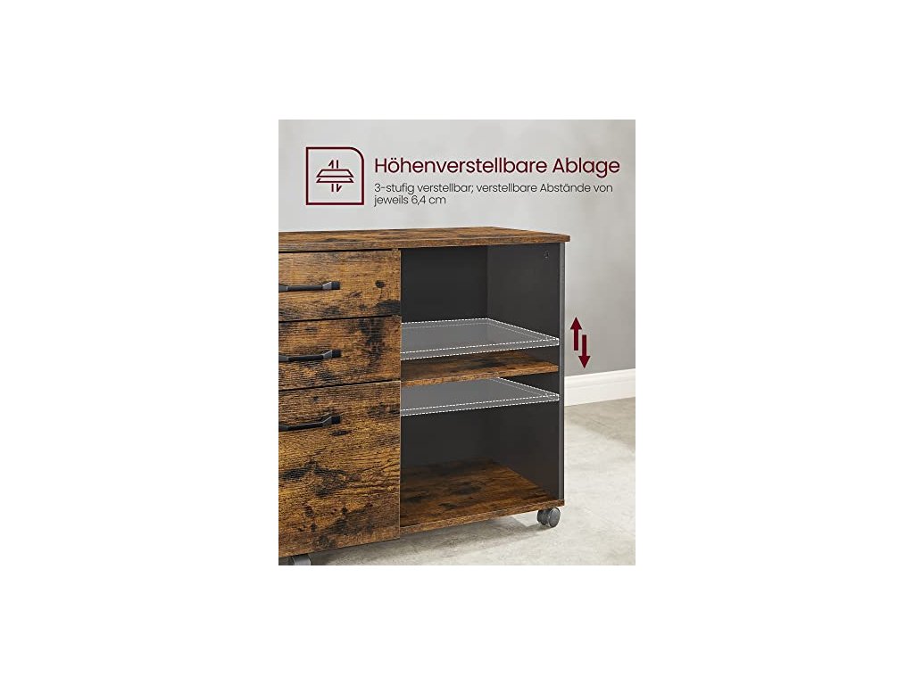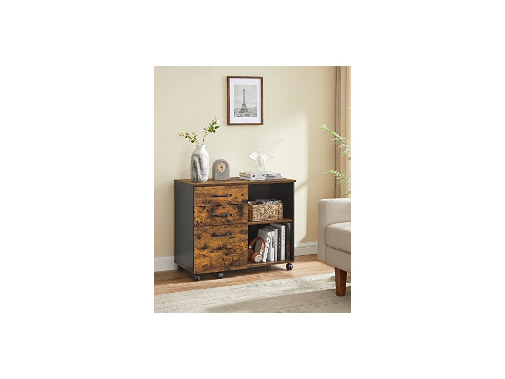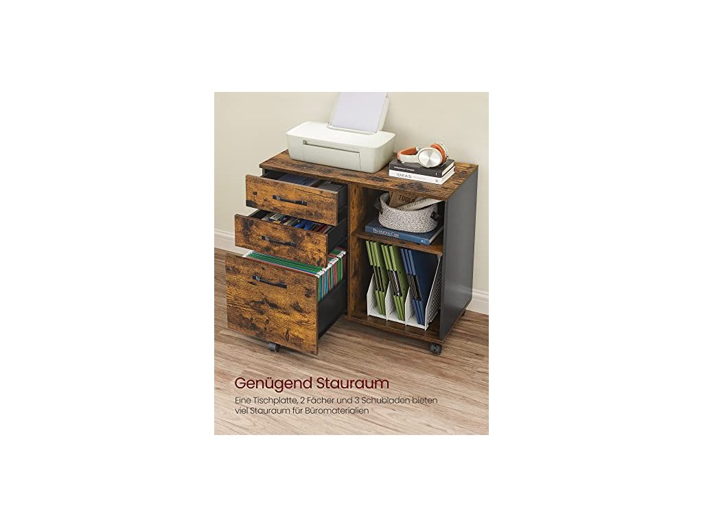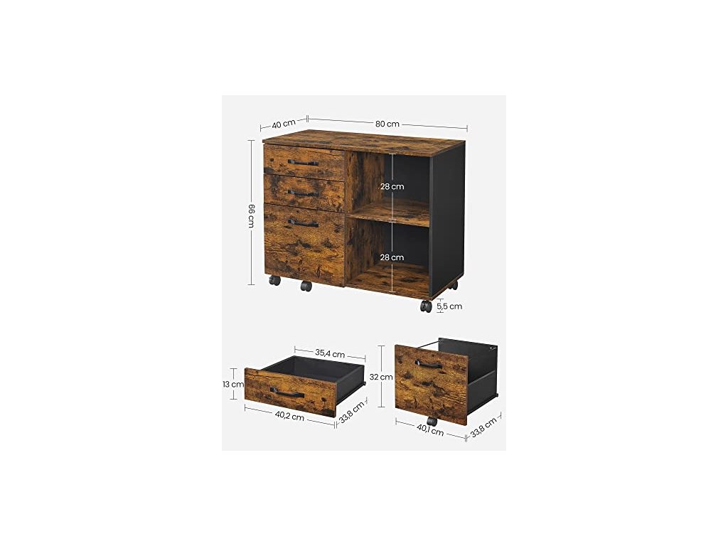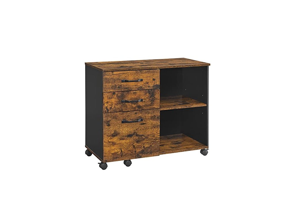 Pojízdná kartotéka se 3 zásuvkami a bočními otevřenými přihrádkami, 80 x 40 x 66 cm, rustikální hnědá a černá