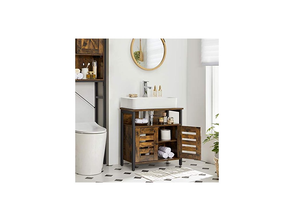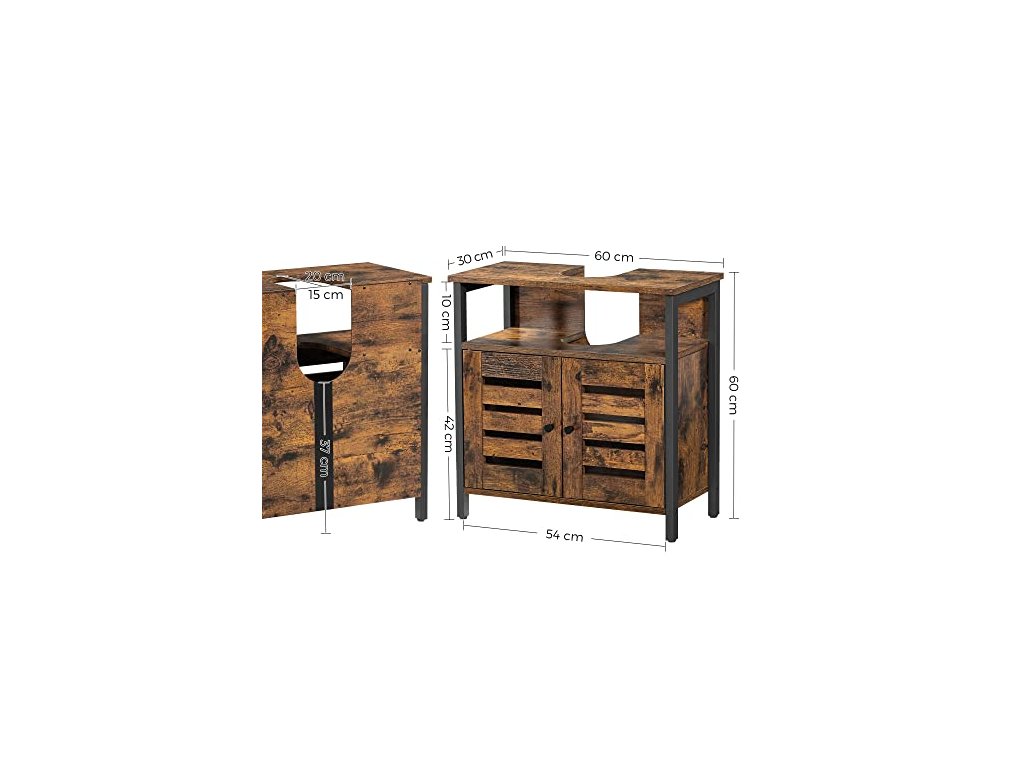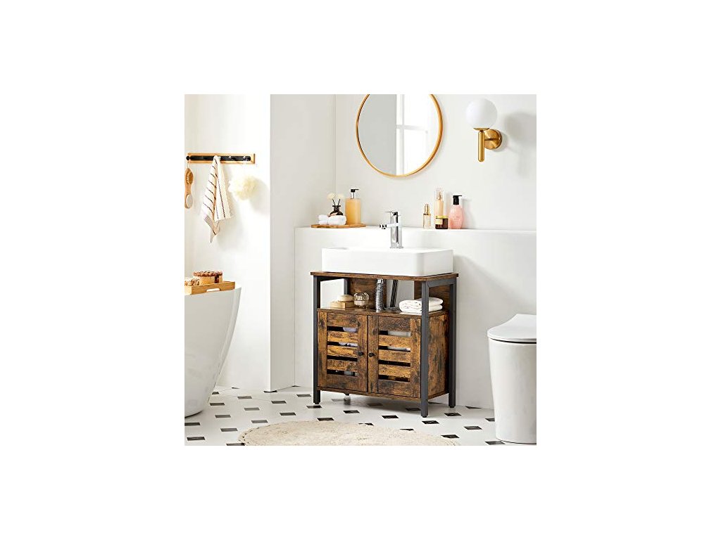 Silnější konstrukce, delší životnost: Tato skříňka pod umyvadlo je vyrobena z robustního ocelového rámu a kvalitní dřevotřísky a je dostatečně odolná, aby sloužila vašim ranním činnostem po mnoho let. Skříňka má nastavitelnou polici.