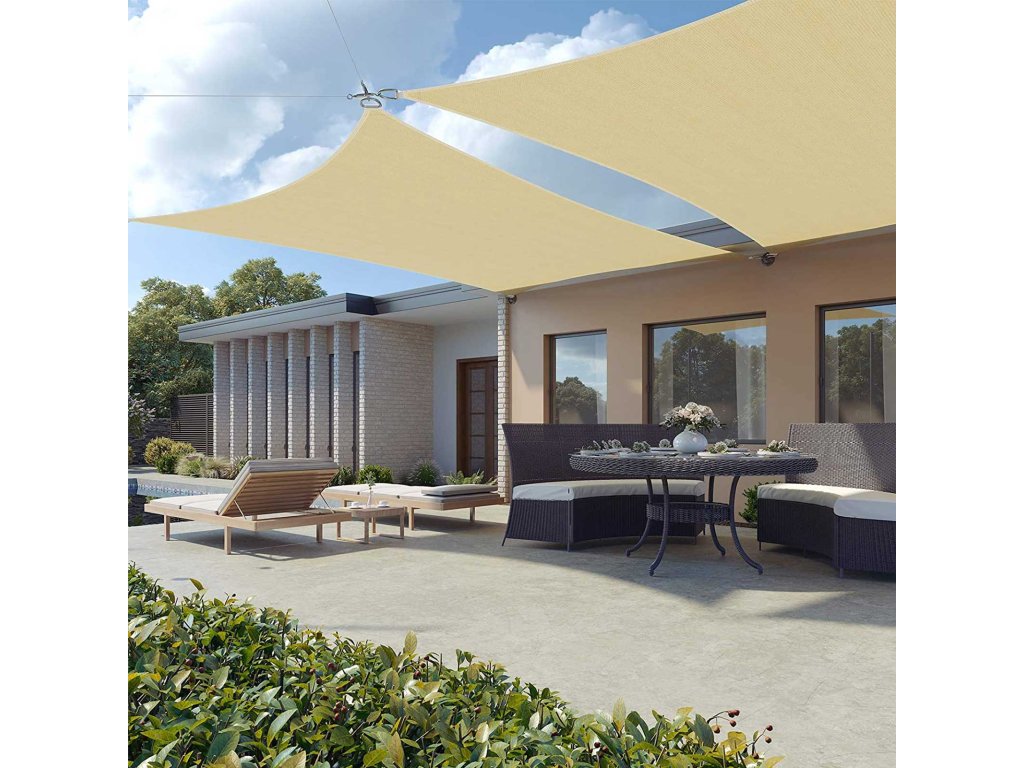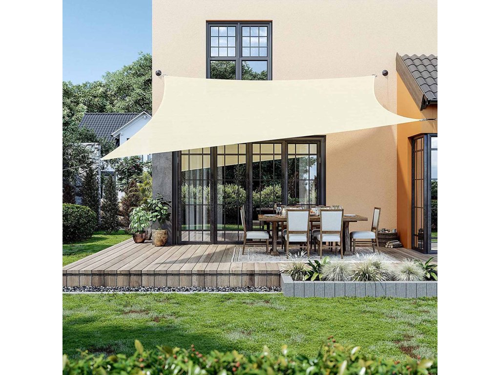 Naše markýza nabízí 85% ochranu před sluncem a poskytuje stín. UV ochrana na balkoně, terase a na zahradě, jako přístřešek pro auto, bazén a jako ochrana před sluncem pro hrající si děti. Propustná pro vzduch, propustná pro vodu: díky materiálu může voda a vzduch pronikat skrz látku. To znamená, že se pod látkou nehromadí teplo a v dešti se netvoří vodní vaky. Větší bezpečnost díky vysoce kvalitnímu zpracování: vysoce výkonný popruh je všitý ve švech, díky čemuž je osuška ještě stabilnější. Rohy jsou zesílené a několikrát prošité a odsazené D-kroužky z nerezové oceli 304. Odolná proti roztržení a rychleschnoucí: tkanina z HDPE (vysoko hustotního polyethylenu) s gramáží 180 g/m² je odolná proti roztržení a povětrnostním vlivům. Také rychle schne, zůstává odolná vůči plísním a hnilobě. Stabilní, bez úchytů pro látku: konkávní (klenutý) střih poskytuje sluneční plachtě větší stabilitu a dodává jí trvalé napětí, takže se neprohýbá dovnitř. Barva: Pískově žlutá. Materiál: Sluneční plachta: Vysokohustotní polyethylen (180 g/m² HDPE), sáček: PVC. Rozměry výrobku: 3 x 5 m. Hmotnost výrobku: 2,9 kg