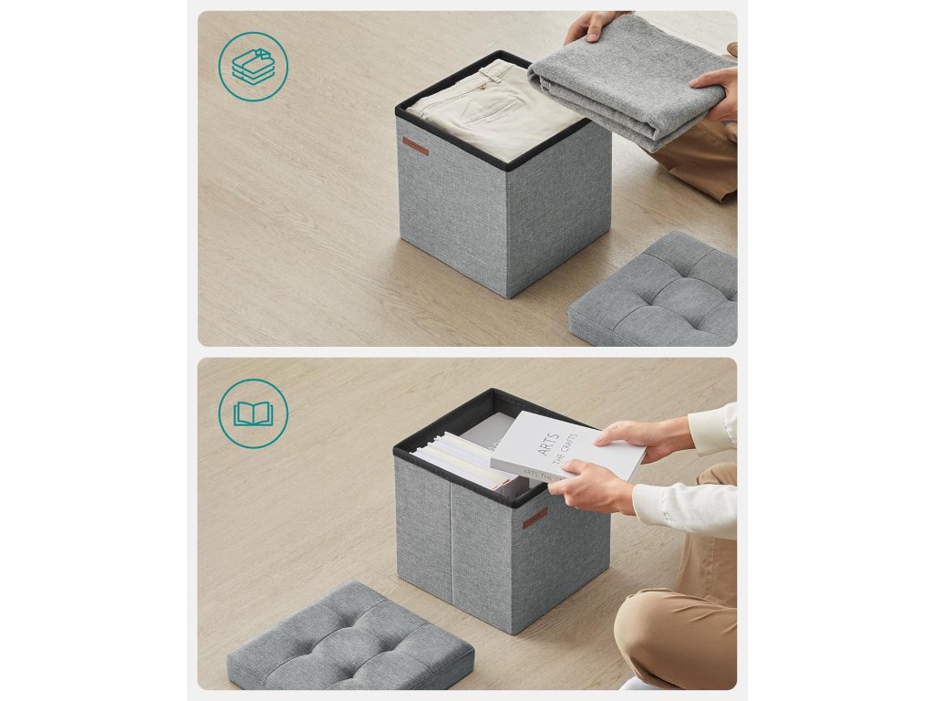 Taburet, 30 x 30 x 30 cm, světle šedý Úložný otoman