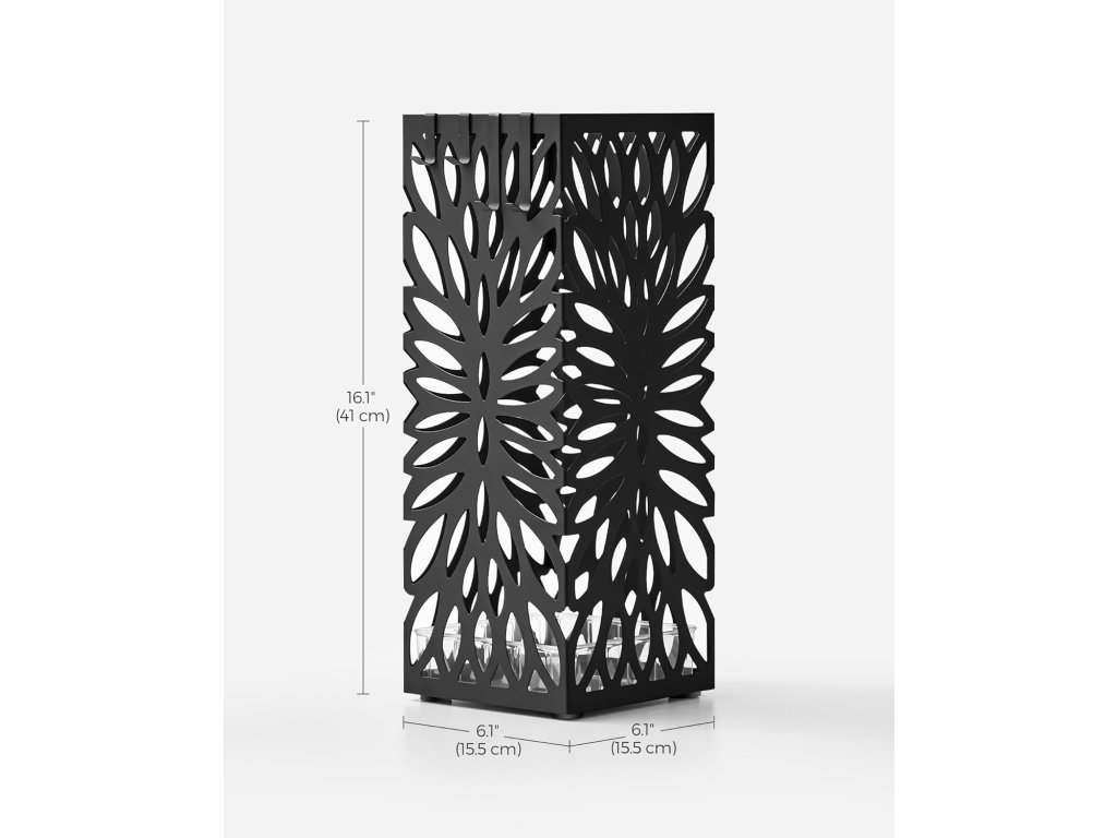 Kovový stojan na deštníky, 15,5 x 15,5 x 41 cm, černý