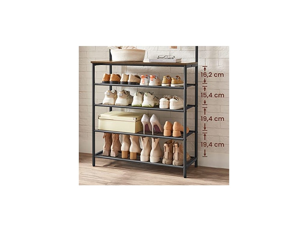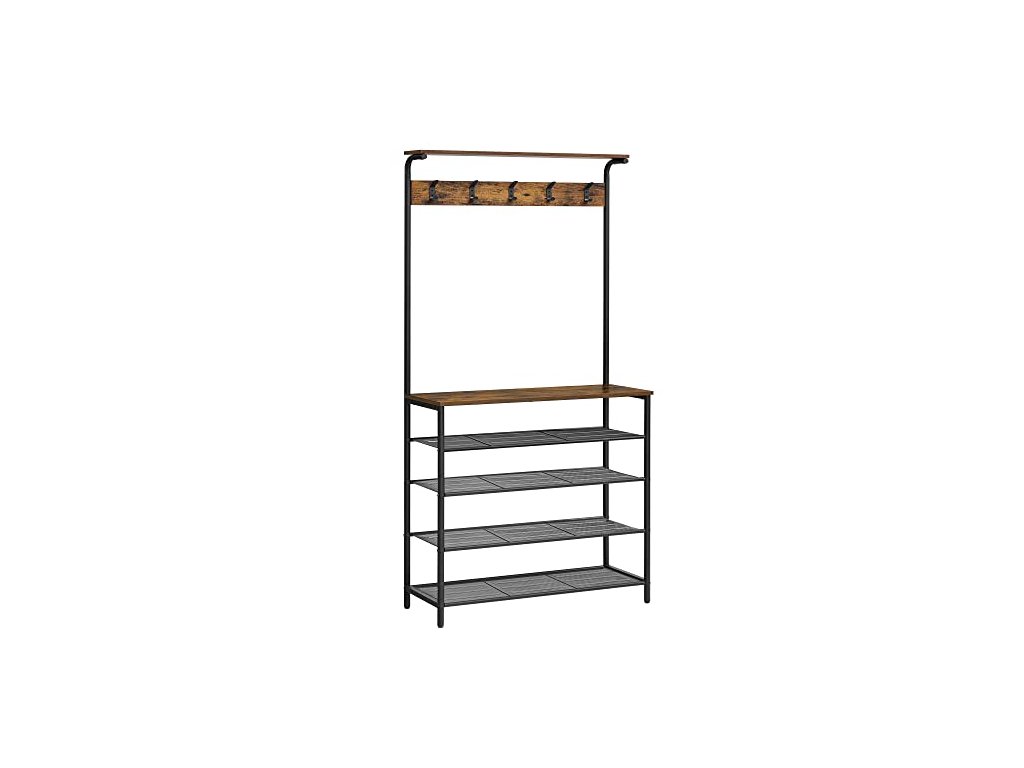 Věšák na oděvy s botníkem, 80 x 31,5 x 183,5 cm, rustikálně hnědý a černý