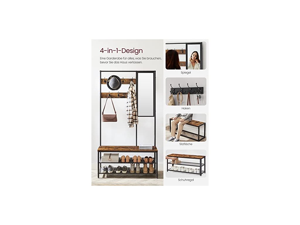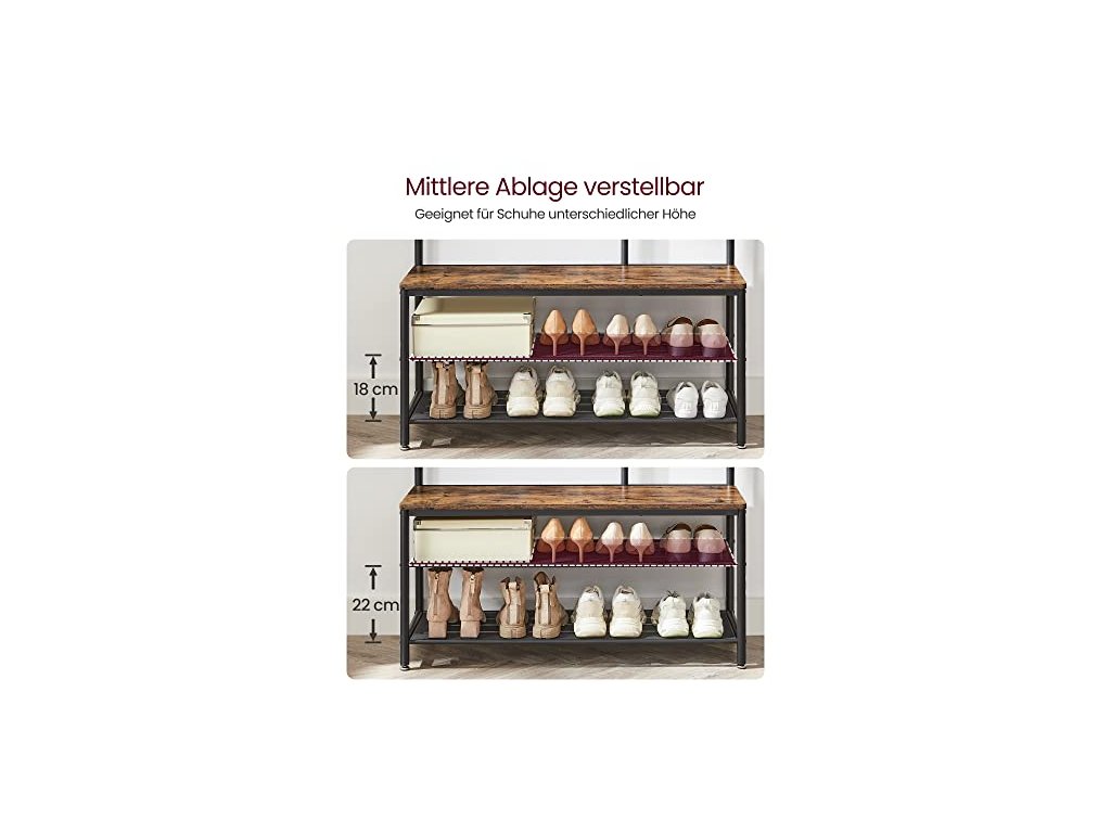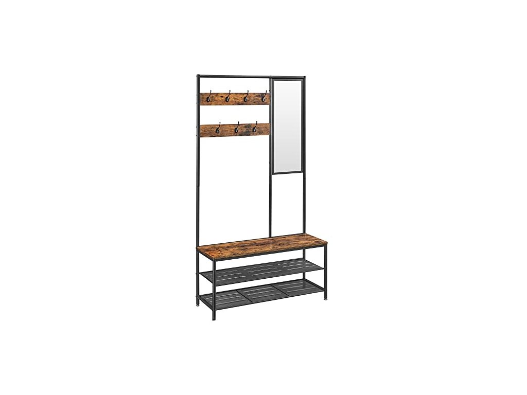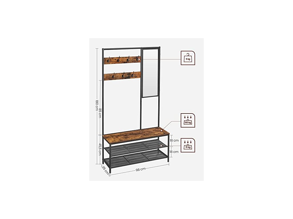Věšák na oděvy s botníkem, 98 x 35 x 180 cm, rustikálně hnědý a černý