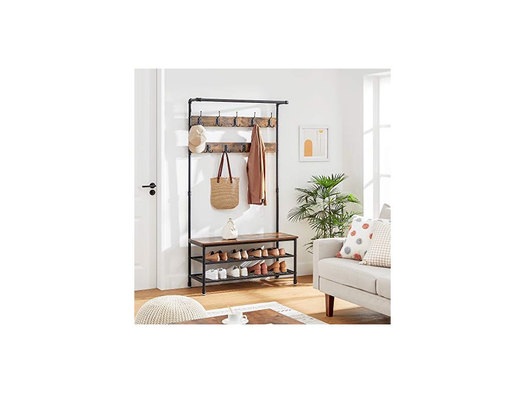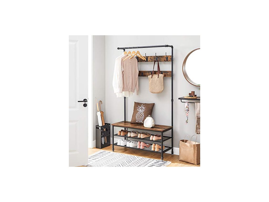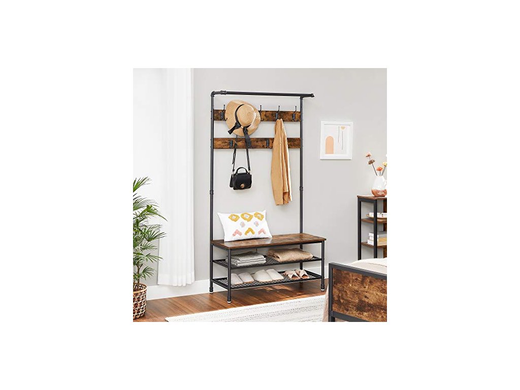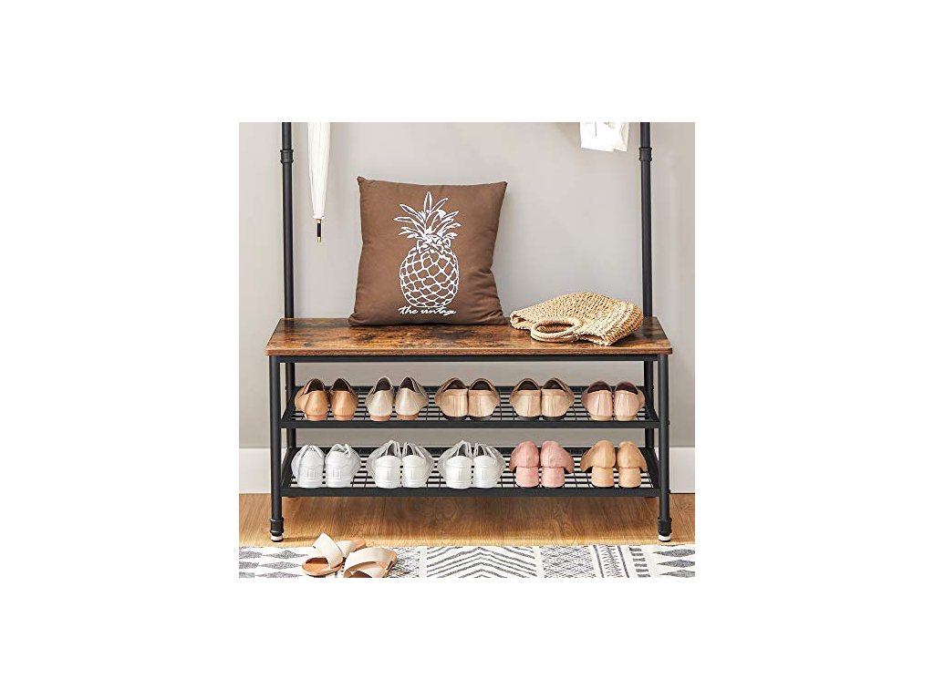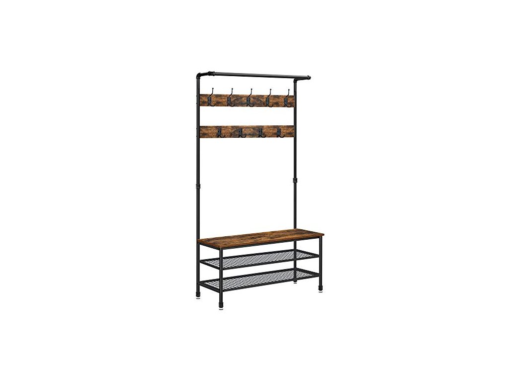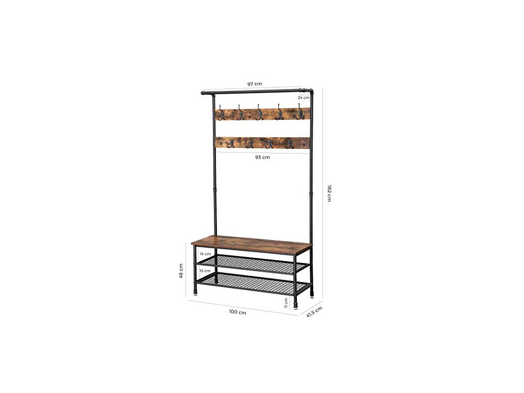 Věšák na oděvy s botníkem, 100 x 41,5 x 182 cm, rustikálně hnědý a černý