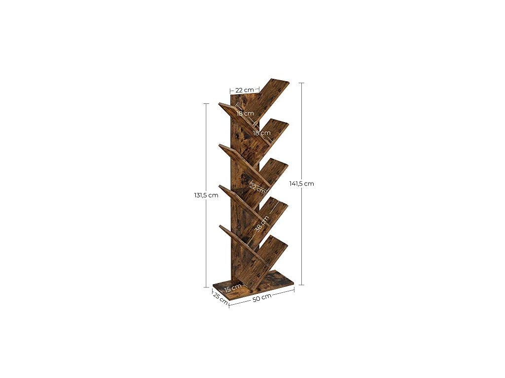 Knihovna, 8 pater, 50 x 25 x 141,5 cm, rustikální hnědá