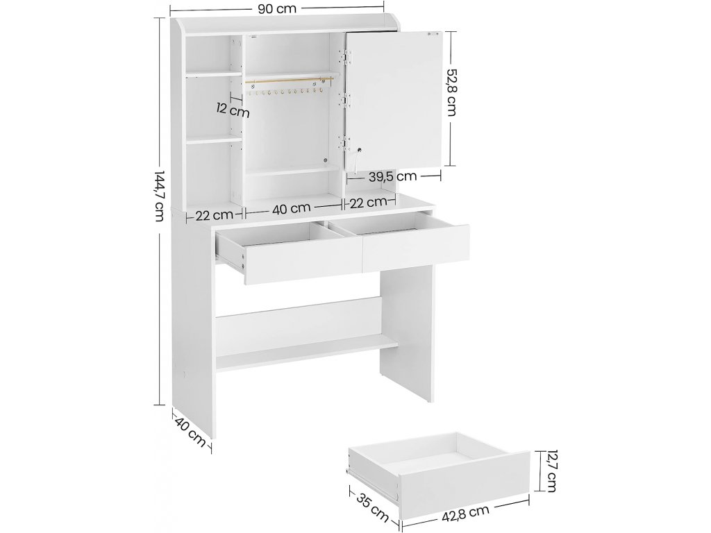 Toaletní stolek, 90 x 40 x 144,7 cm, bílý