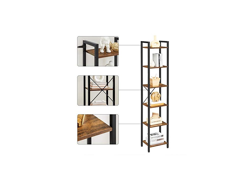 Tato úzká police na knihy zabírá málo místa na podlaze, ale nabízí 6 úrovní vertikálního úložného prostoru, takže plně využijete malé prostory v obývacím pokoji, ložnici, koupelně nebo předsíni.