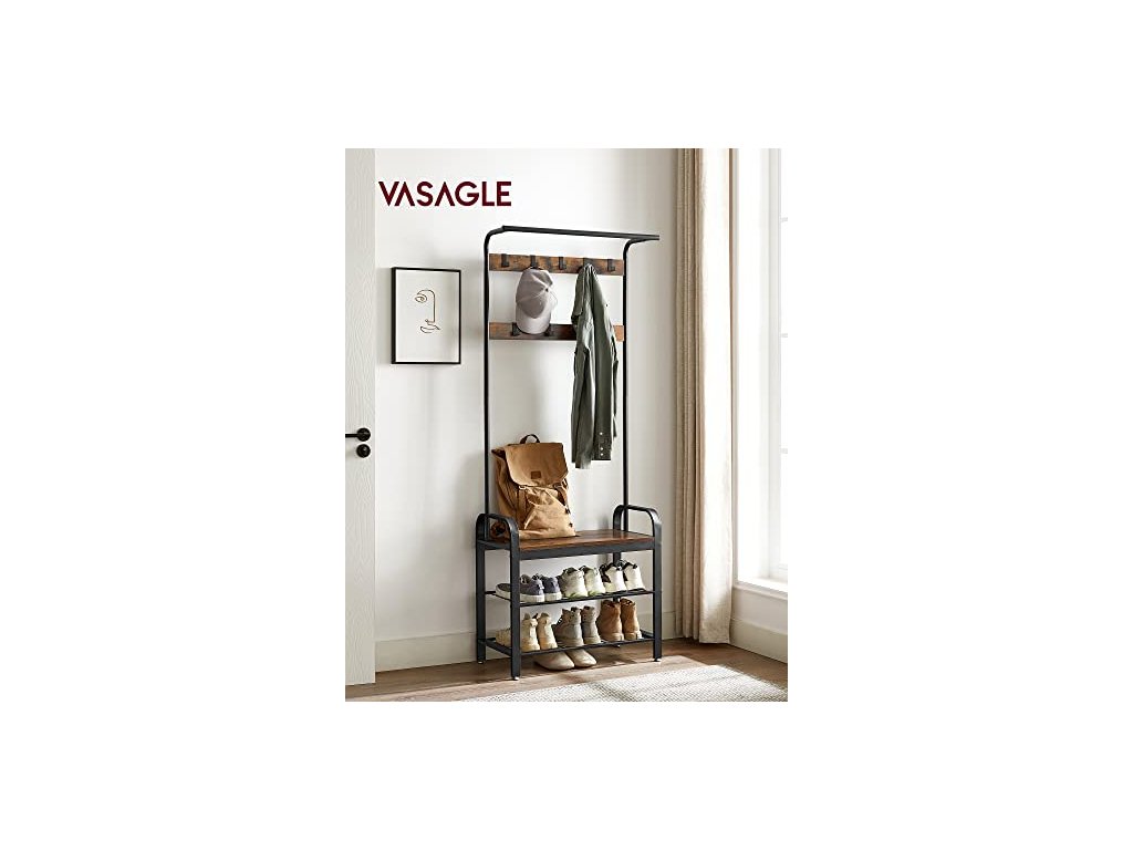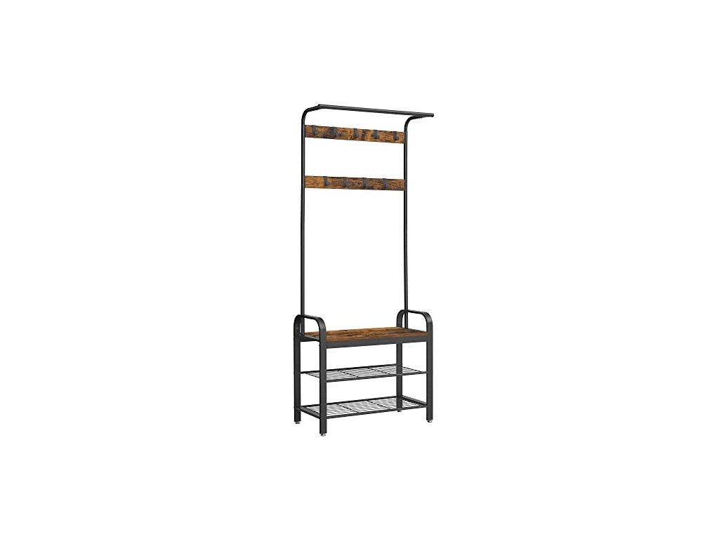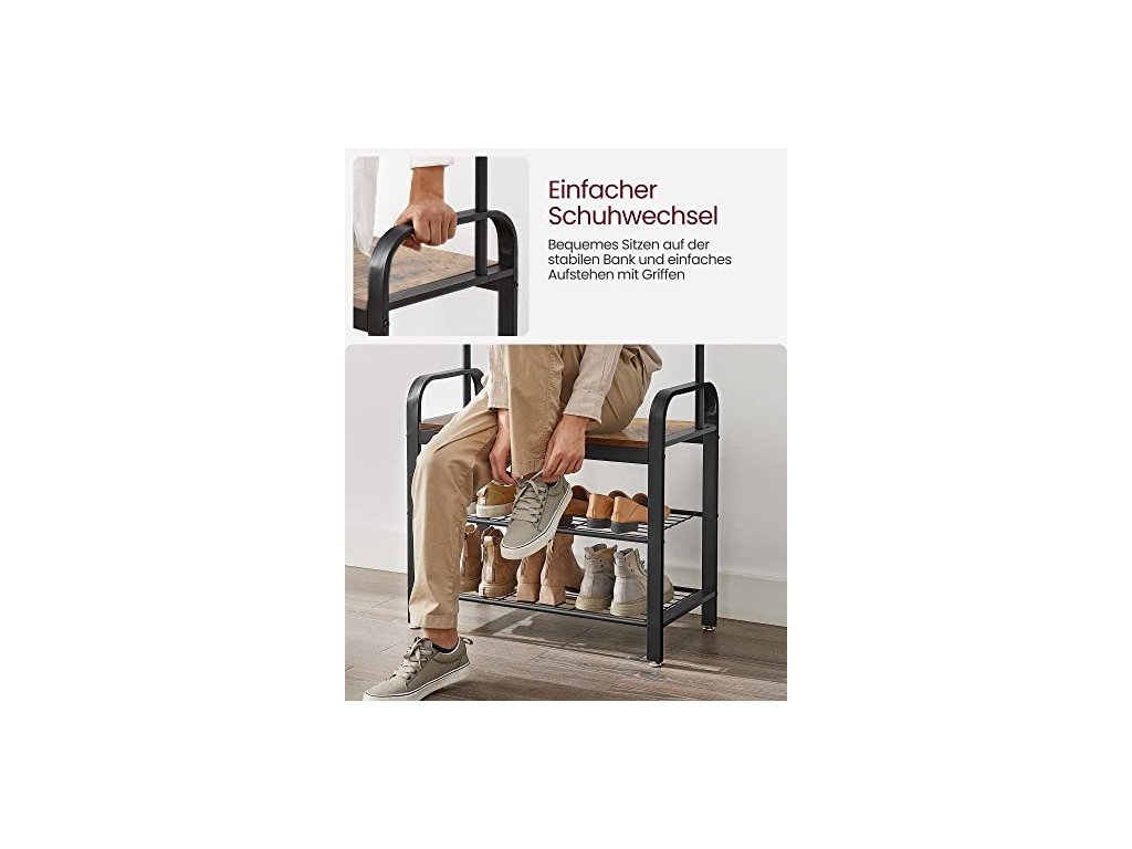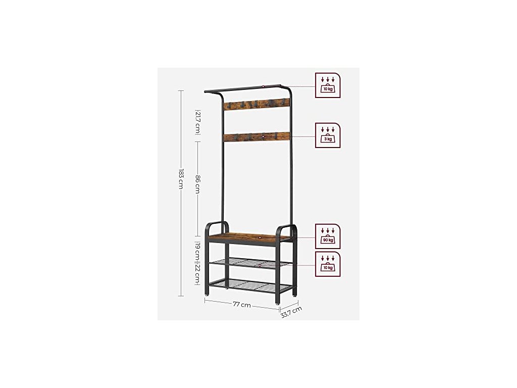 Věšák na oděvy s botníkem, 77 x 33,7 x 183 cm, rustikálně hnědý a černý