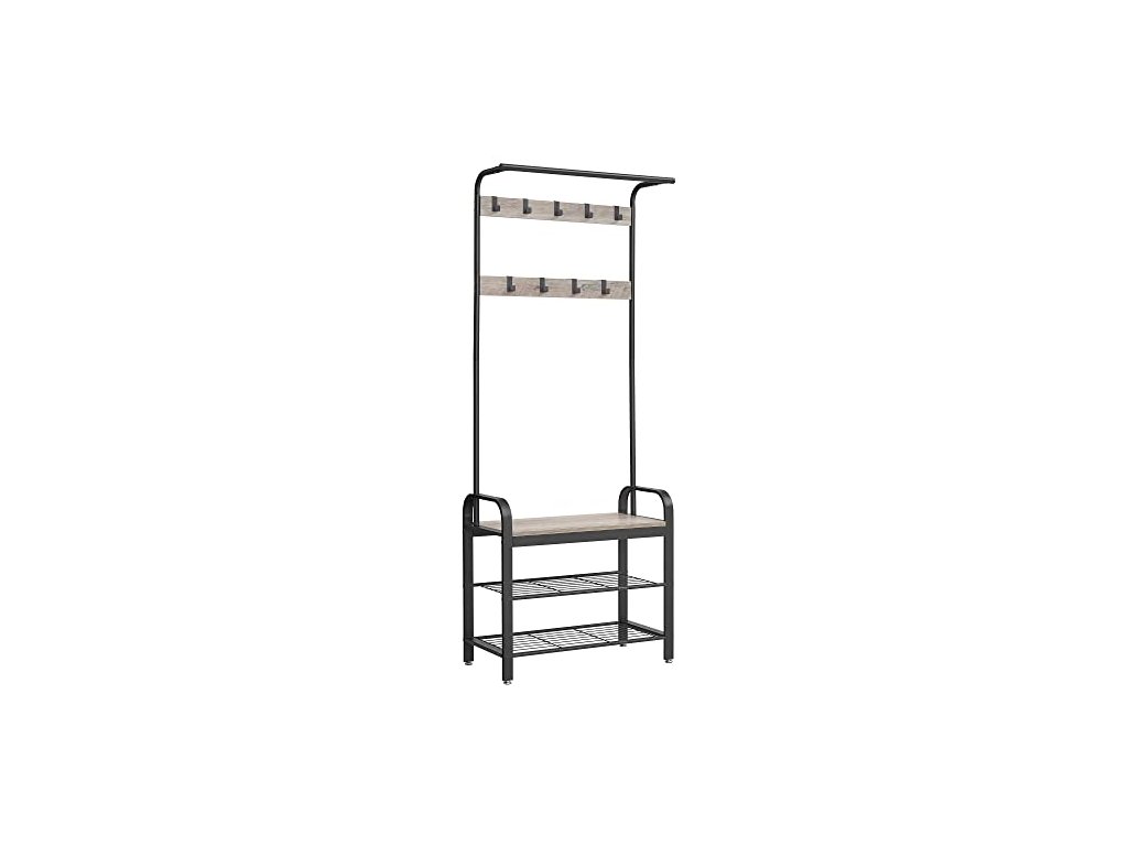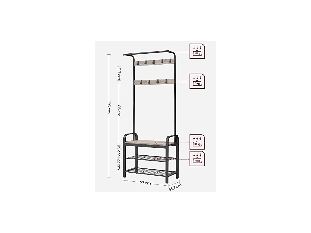 Věšák na oděvy s botníkem, 77 x 33,7 x 183 cm, šedohnědý a černý