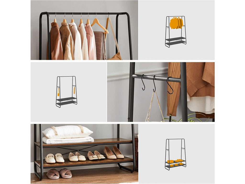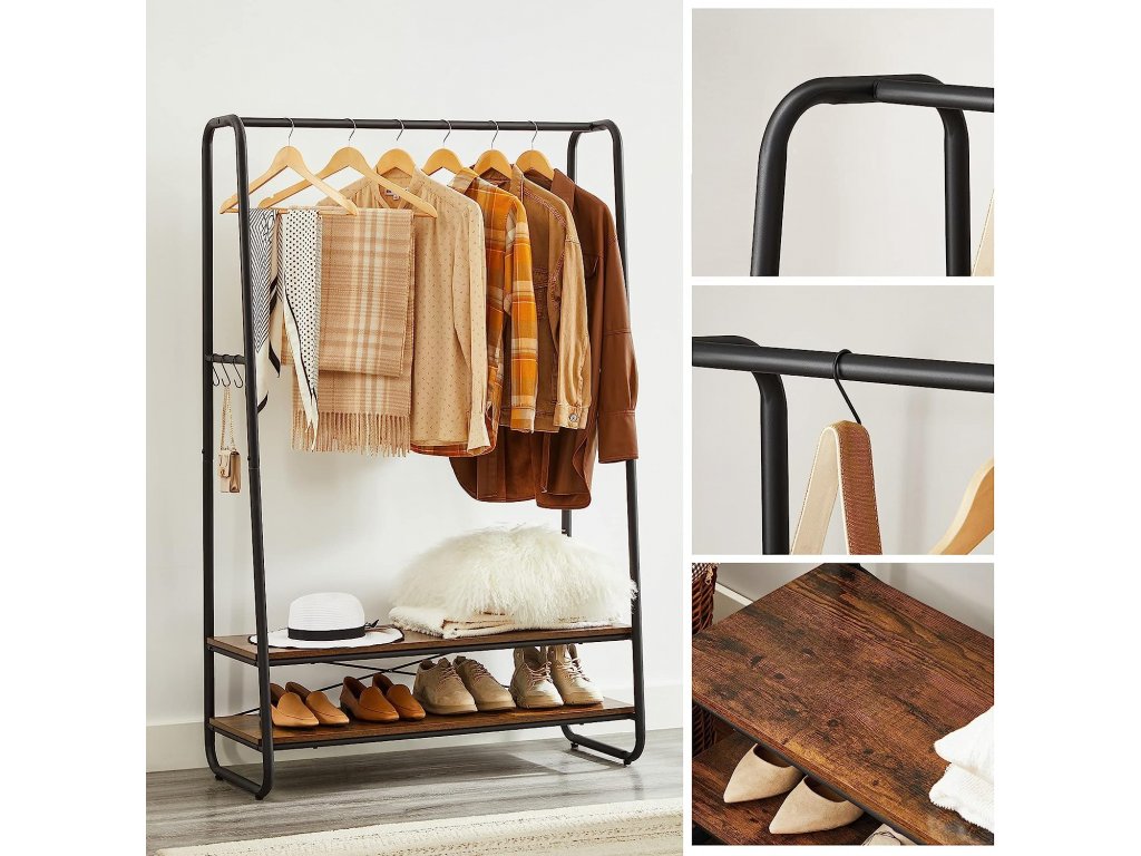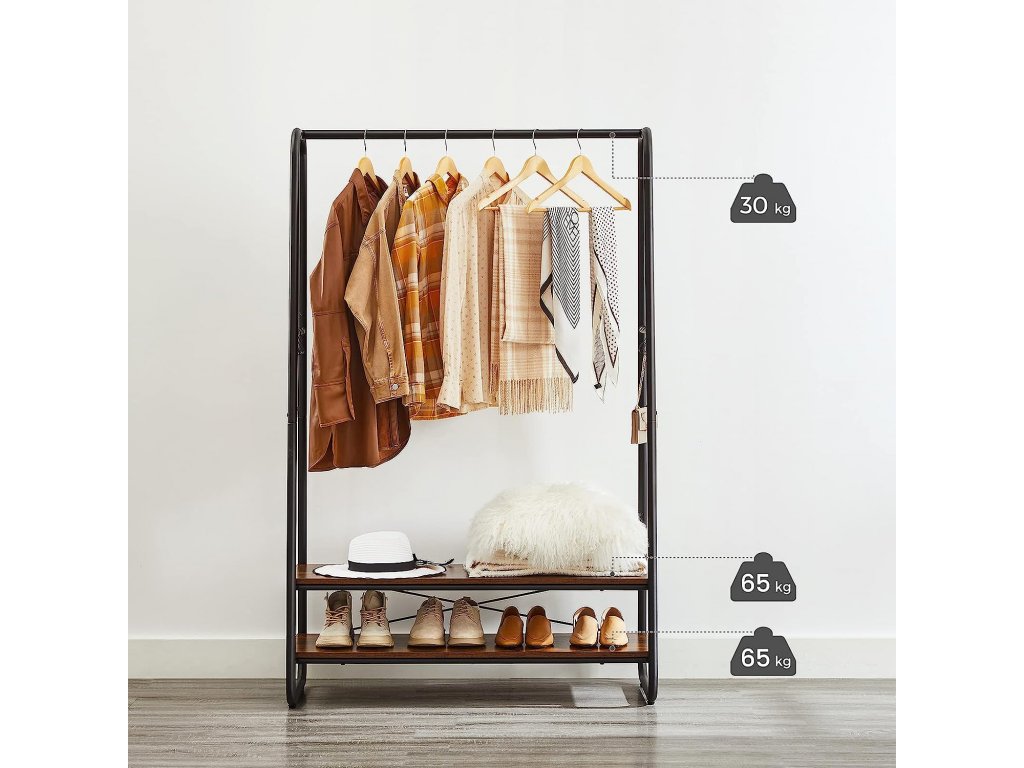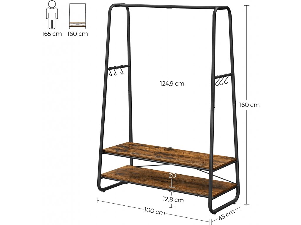 Průmyslový věšák na oděvy, 100 x 45 x 160 cm, rustikálně hnědý a černý