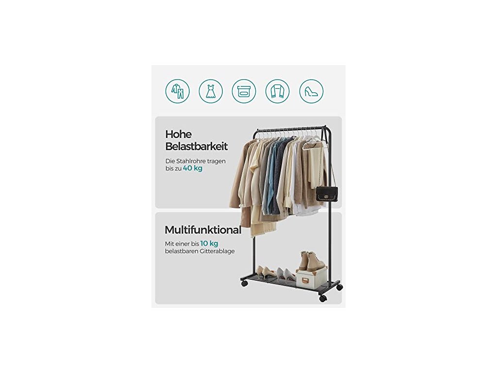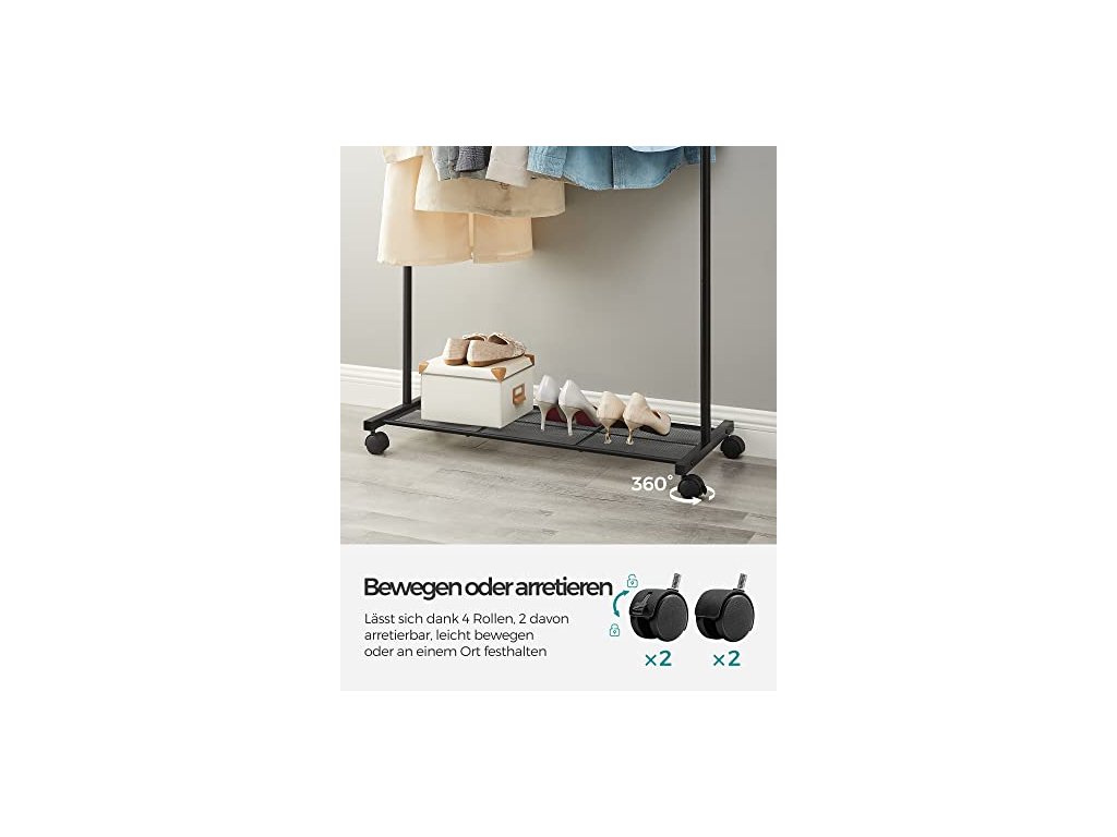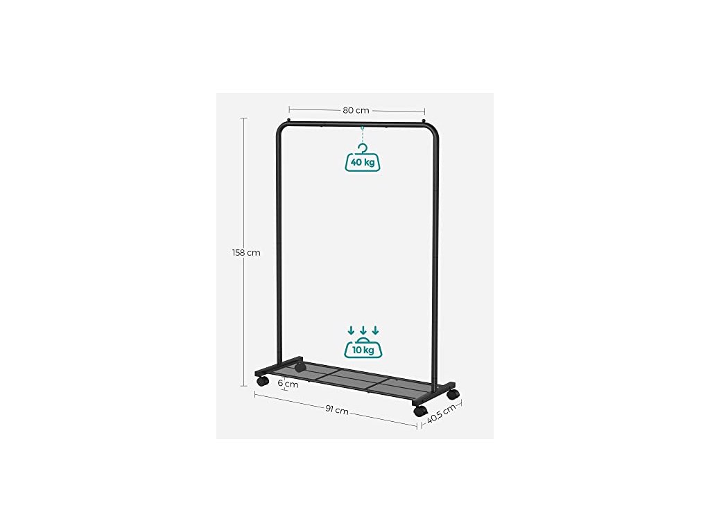 Pojízdný věšák na oděvy, 91 x 40,5 x 158 cm, černý