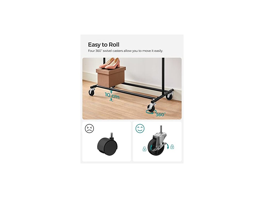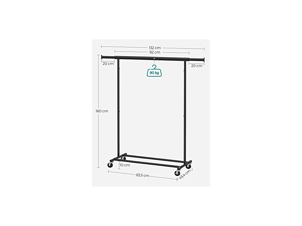 Pojízdný věšák na oděvy, 92-132 x 45,4 x 160 cm, černý