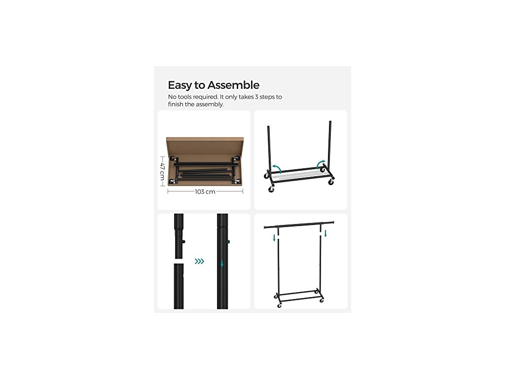 Rozšiřitelná závěsná lišta: Každý konec horní lišty se prodlouží o dalších 20 cm, abyste měli více prostoru pro zavěšení (horní lišta se prodlouží z 92 cm na 132 cm); 2 prodlužovací konce jsou také ideální pro zavěšení kabelek, klobouků, šátků nebo jiných doplňků. Snadná montáž