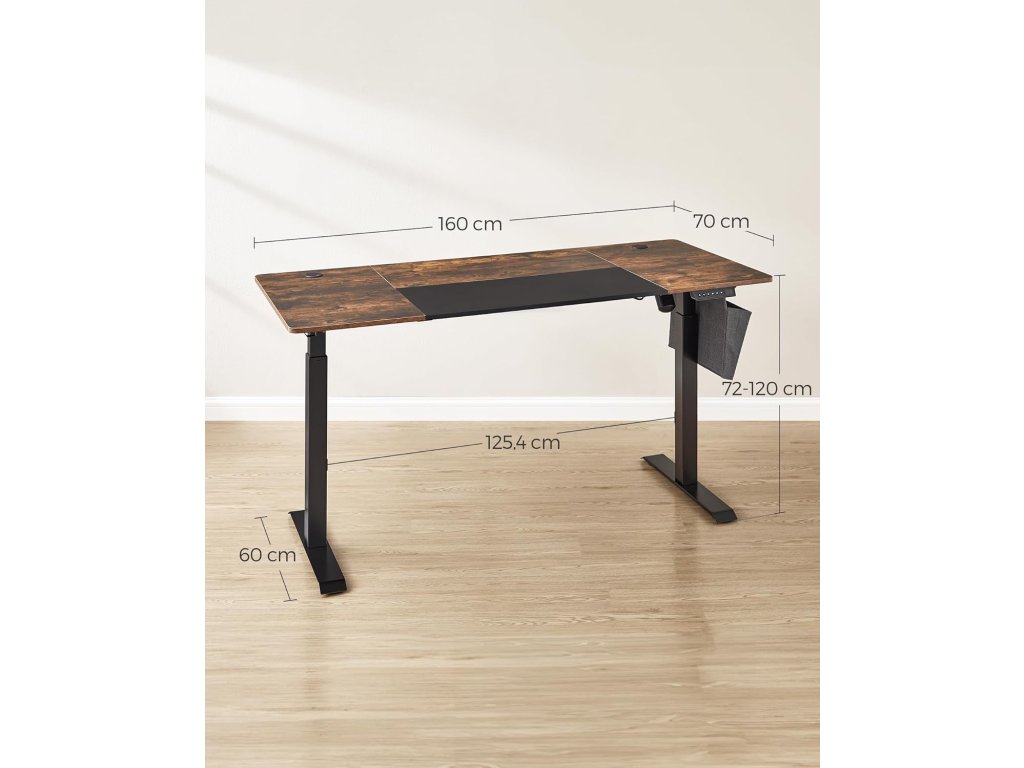 Výškově nastavitelný psací stůl, 160 x 70 x 72-120 cm, rustikálně hnědý a černý