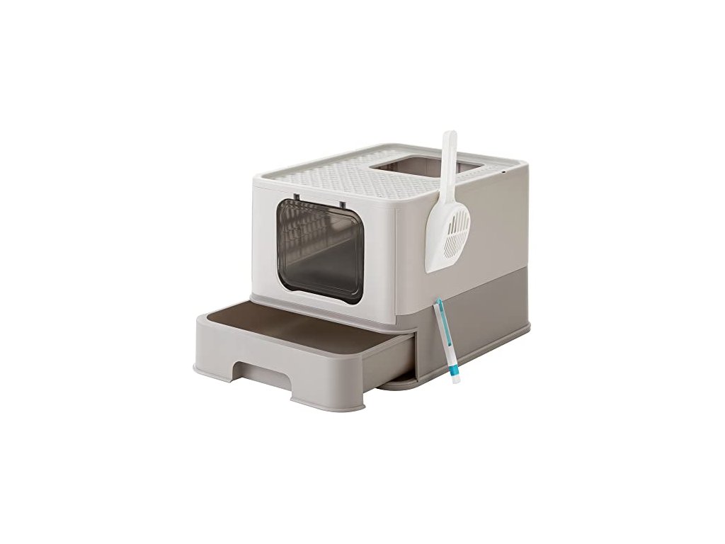 Méně nečistot: mřížka v horní části umožňuje, aby stelivo padalo zpět do boxu a kočky ho nevynášely ven. Vyvýšený okraj nad boxem a uzavřené dno pod ním zabraňují pronikání steliva nebo kočičí moči na podlahu. Kočičí toaleta s krytem, výsuvným zásobníkem, lopatkou a kartáčem. Vhodný i pro velké kočky, max. zatížení 15 kg.