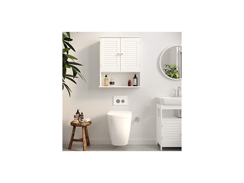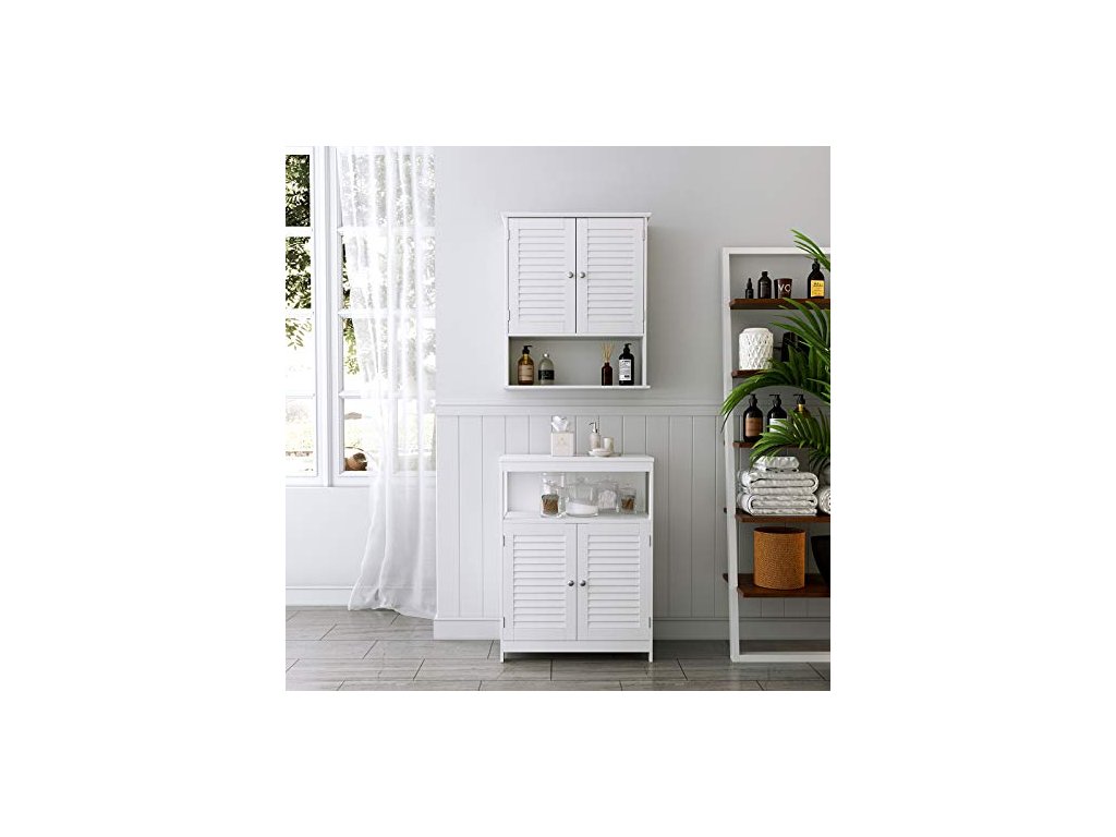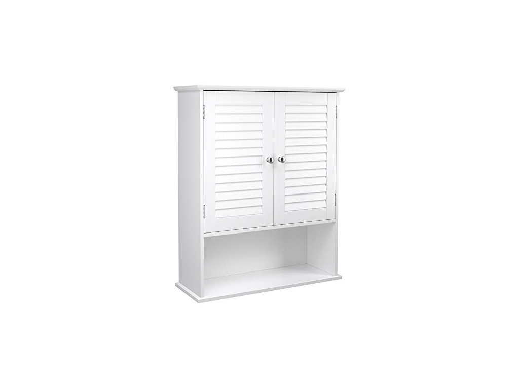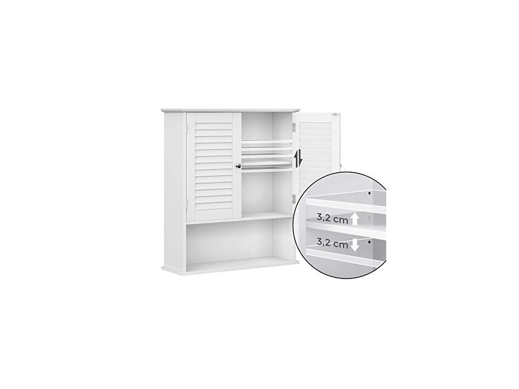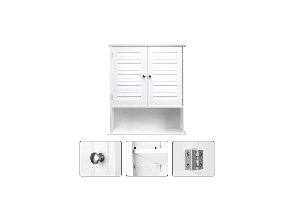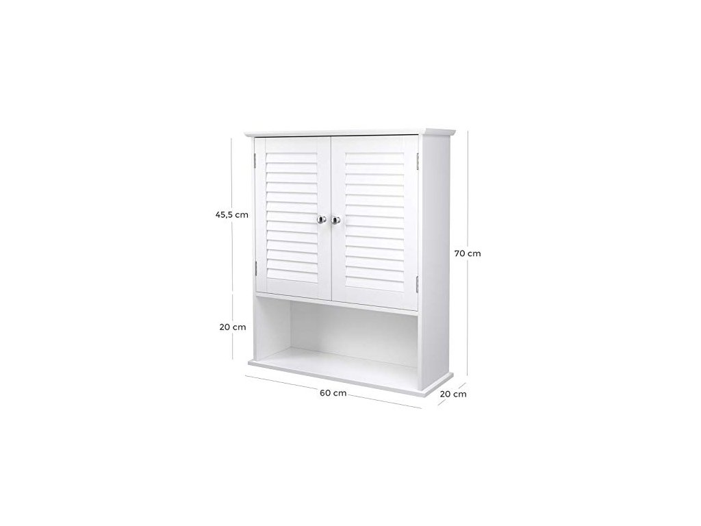 Tato jednoduchá, ale moderní koupelnová skříňka s dvojitými okenicemi, elegantním korpusem z MDF třídy E1 a 2 chromovanými kovovými knoflíky se dokonale hodí do vaší koupelny, obývacího pokoje, předsíně nebo jiné místnosti. Skříňka s nastavitelnou policí, dvojitými dveřmi a otevřenou policí.