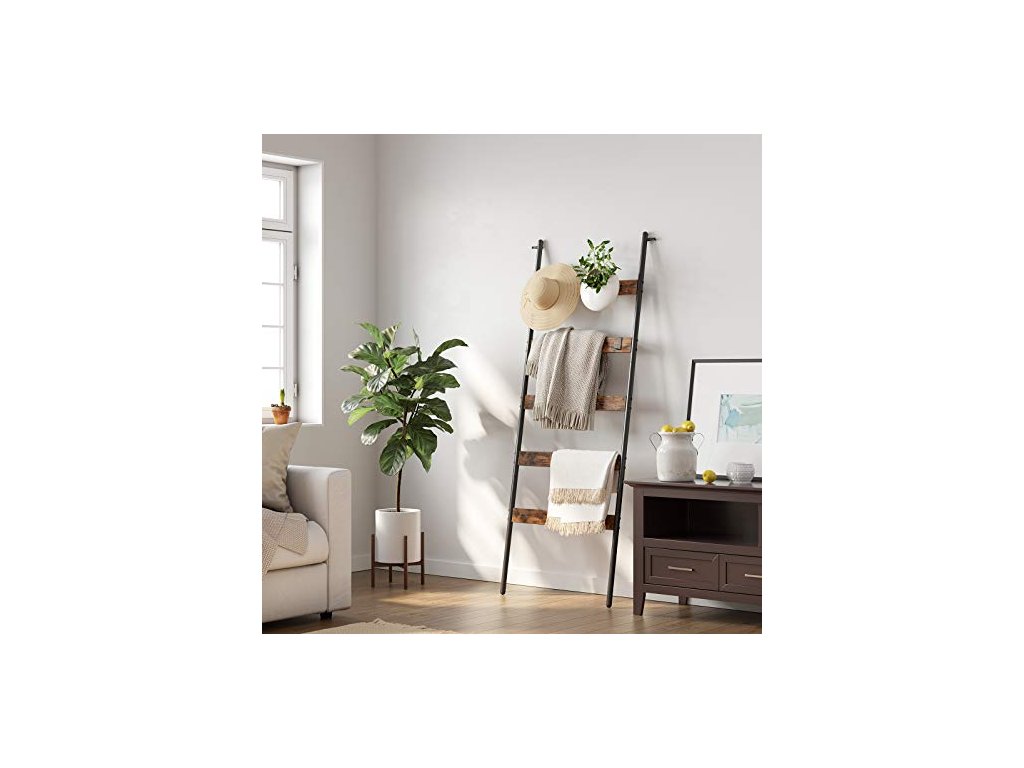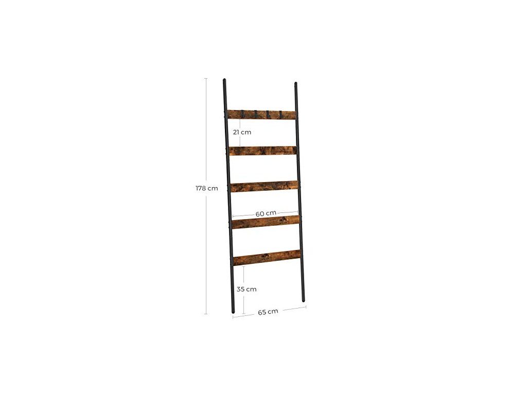 Žebřík na ručníky, 5 pater, 65 x 178 cm, rustikálně hnědý a černý